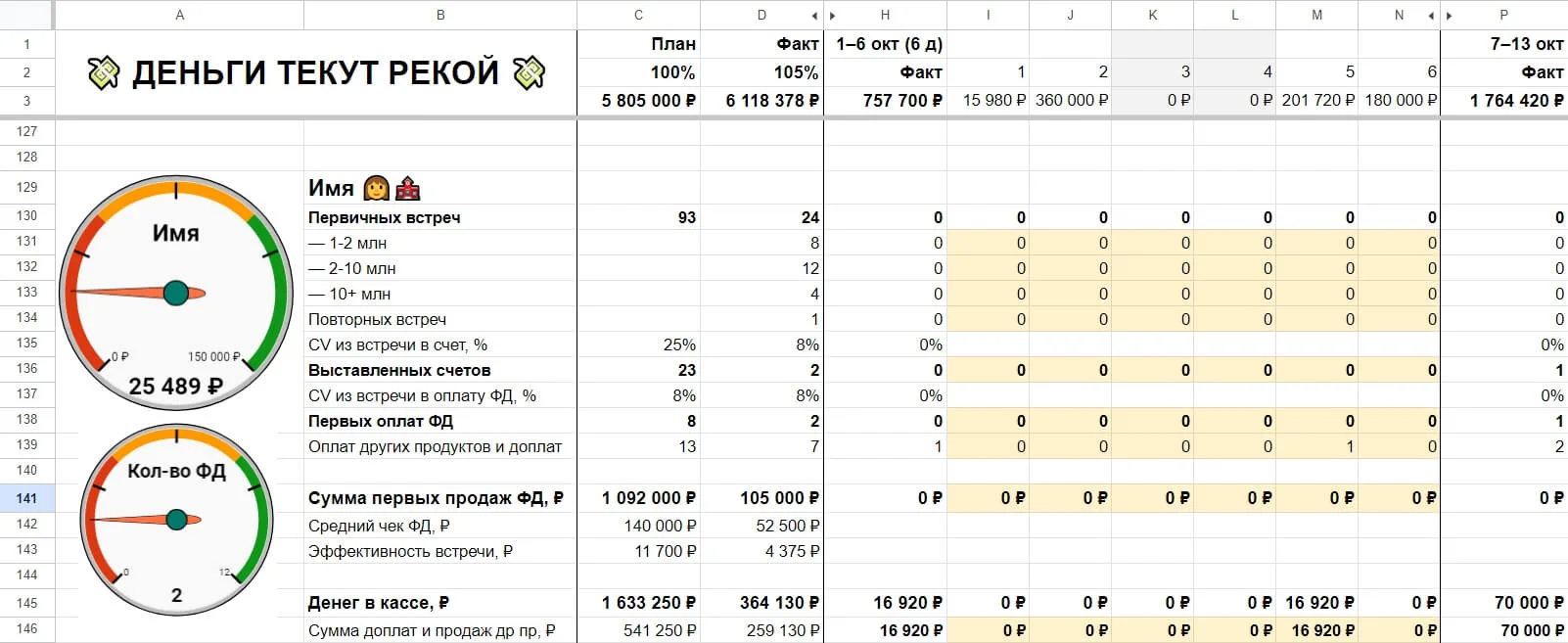 Таблица поможет следить за работой всего отдела продаж и отдельных менеджеров. Вы увидите, кто из менеджеров приносит больший доход компании. А сами менеджеры увидят, сколько они заработают в этом месяце.