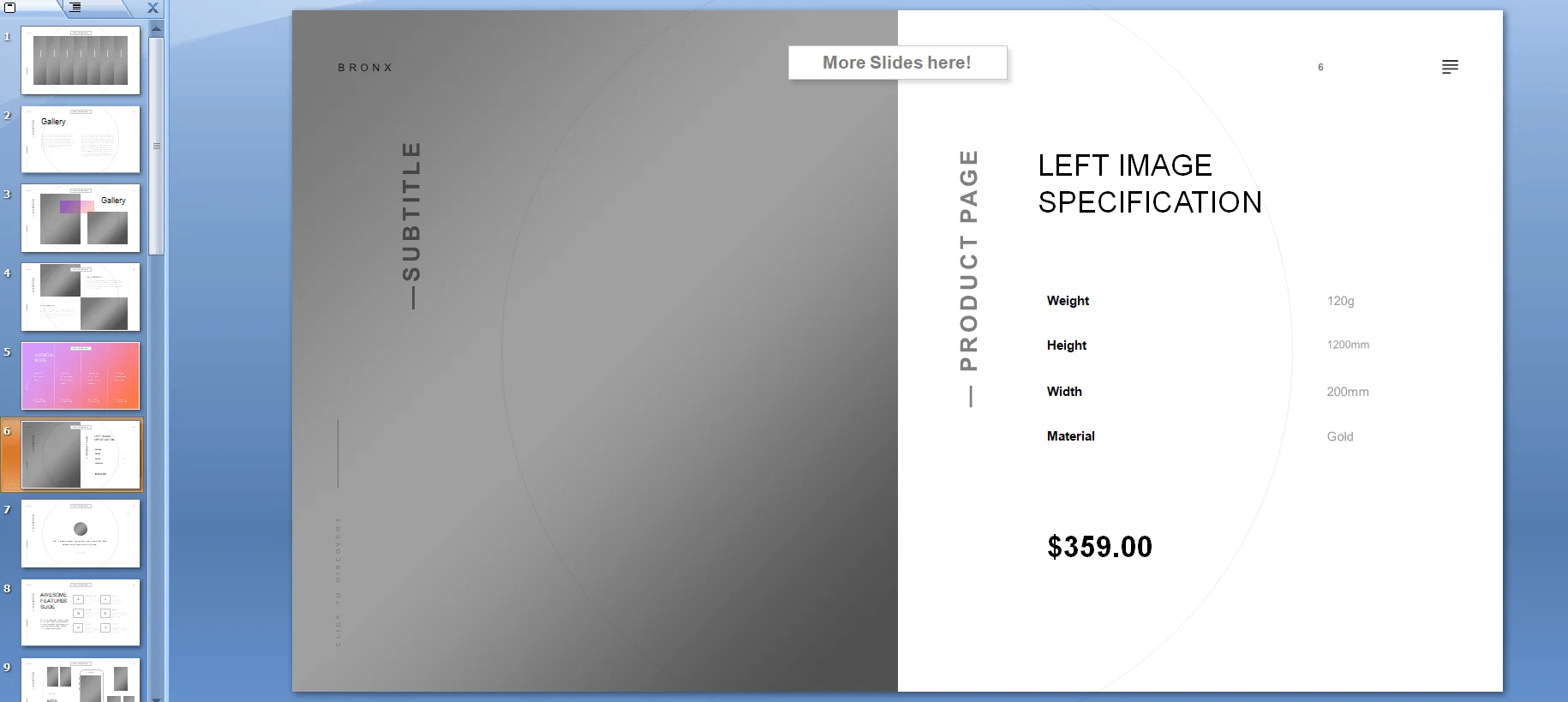 Что входит в шаблон. 100 анимированных слайдов, графики, диаграммы, много места для вставки картинок. Доступны мокапы для мобильного и десктопного экрана. Ярких цветов тут нет, только несколько оттенков серого.