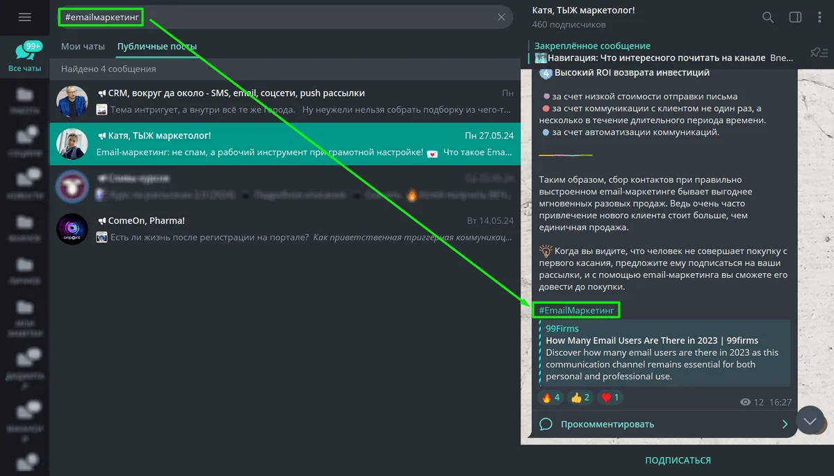 Функцию глобального поиска по хештегам однозначно стоит использовать как способ дополнительного продвижения в Telegram. При грамотном подходе к выбору тегов можно повысить узнаваемость бренда, привлечь потенциальных клиентов и расширить охват аудитории.