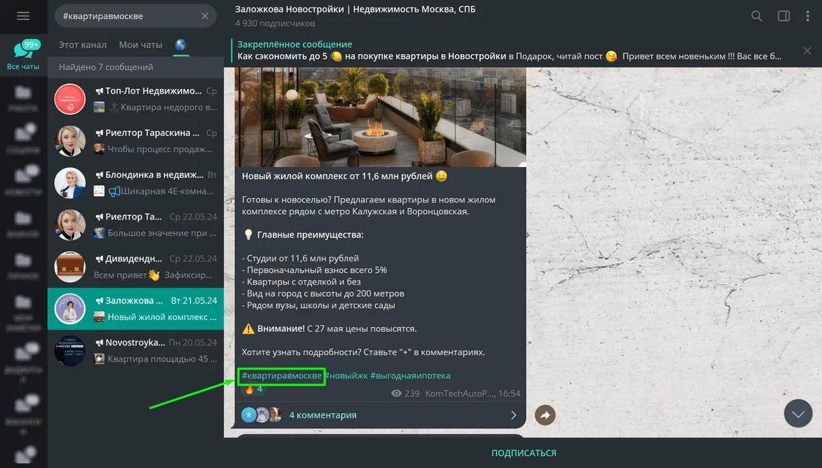 1. Кликните по заинтересовавшему вас тегу в публичном канале.