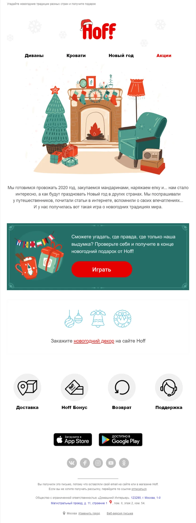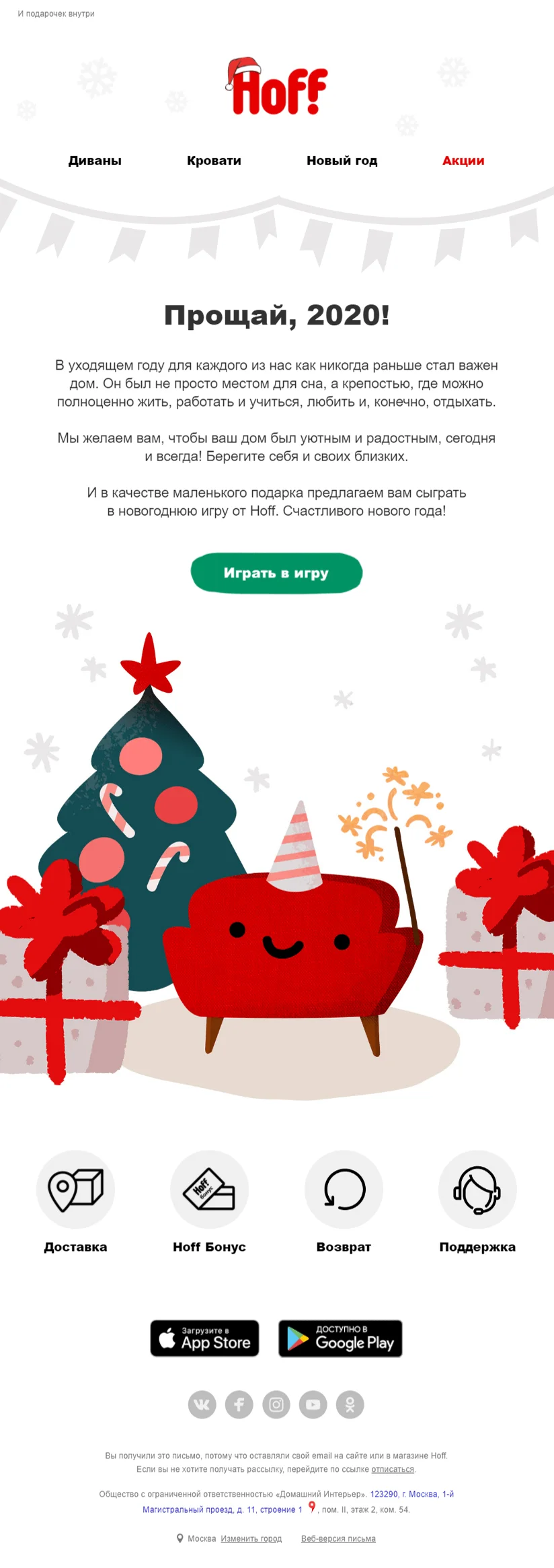 К 2021 году мы решили пойти дальше и создать свой первый новогодний спецпроект, который выделит Hoff на фоне других рассылок в предпраздничной суете.