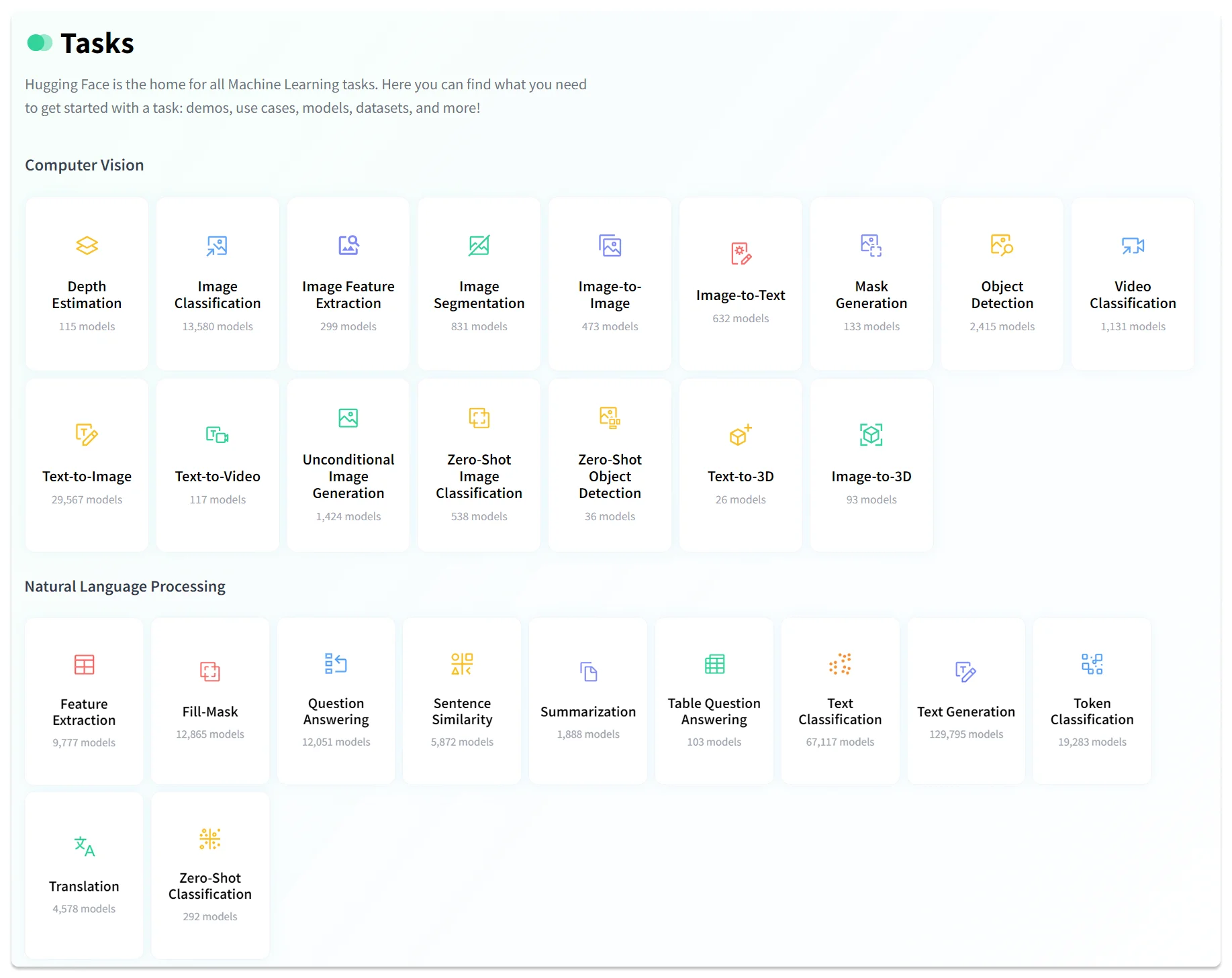 В разделе Resources есть вкладка Tasks — это подборки нейросетей и моделей под разные задачи. Например, здесь можно найти инструменты для работы над машинным зрением: перевода текста в изображения или видео, сегментирования картинок.