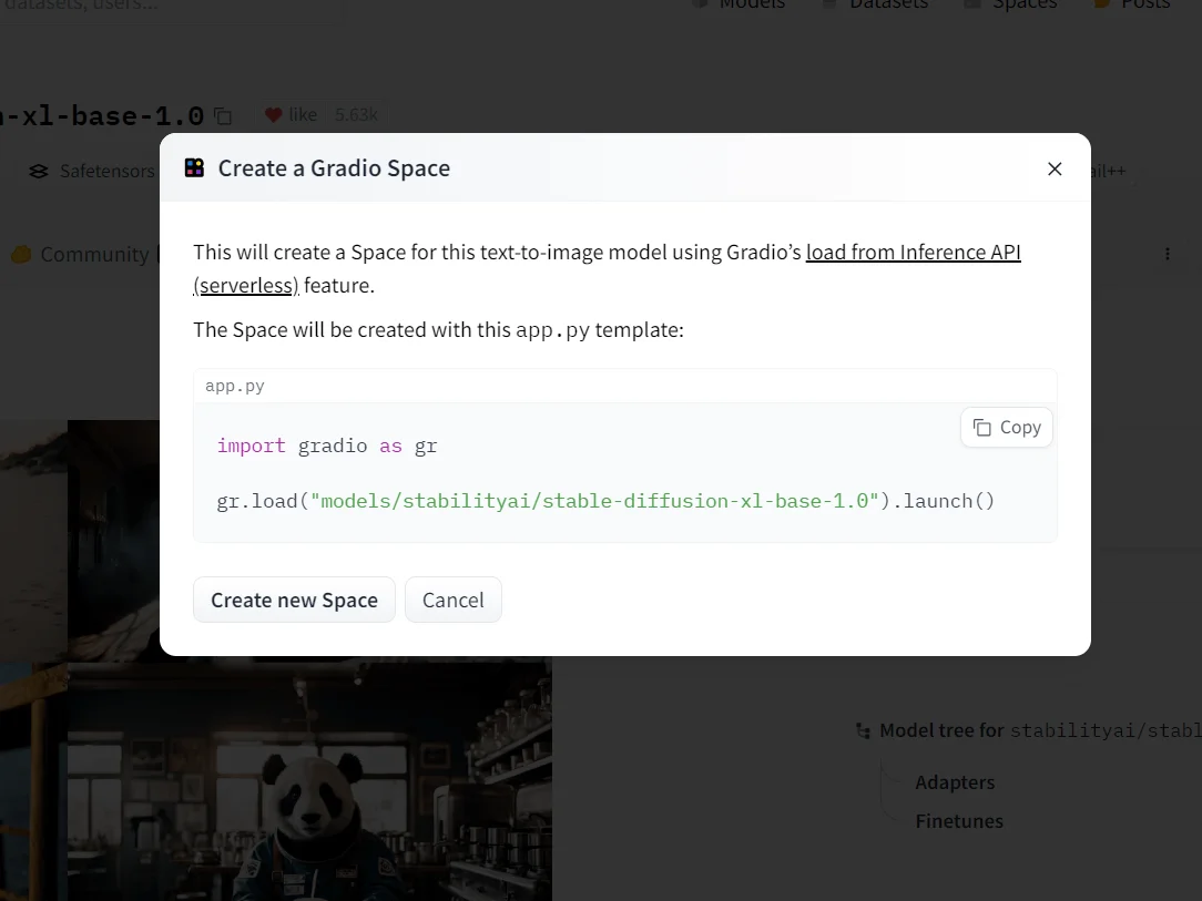 Платформа устроена по типу комьюнити — здесь есть подписки, лайки, профиль. Основные разделы — Spaces и Models.