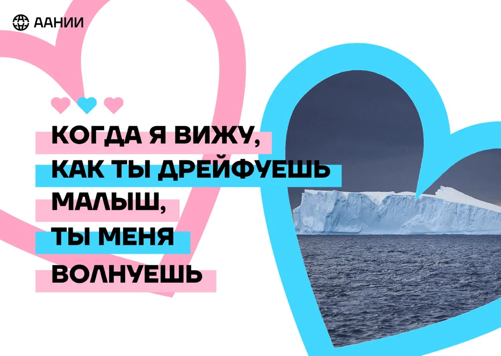 Арктический и антарктический институт выпустил подборку валентинок для влюбленных в полярную науку (и не только). На каждой валентинке — комплименты от настоящих полярников.