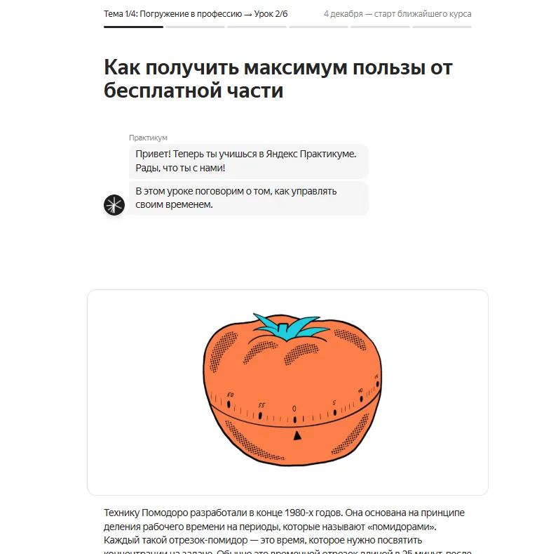 Курс предлагает участникам такой формат: изучить тему — и практиковать ее сразу после изучения юнита.
