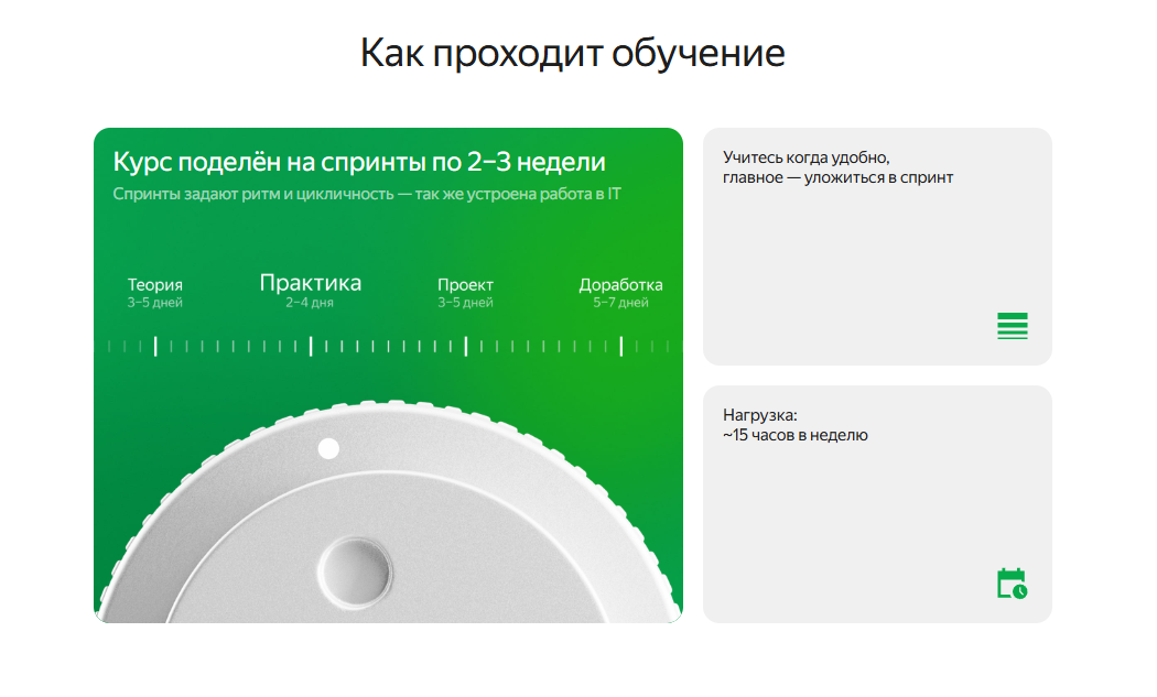 Программа включает интенсивную практику, пополнение портфолио 25 практическими работами и поддержку с трудоустройством.
