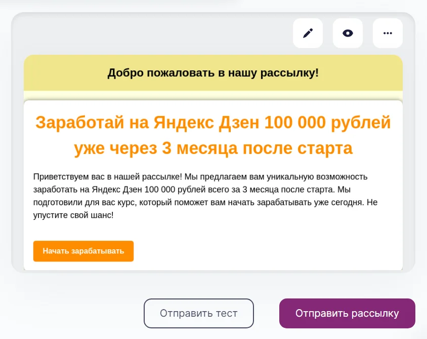 Для примера создадим полноценное письмо через ChatGPT. Тема рассылки — продажа курсов по заработку на Дзене. Попросим бота сгенерировать несколько тем на выбор, а также подсказать, о чем писать в самом письме. Вот темы, которые получилось сгенерировать.