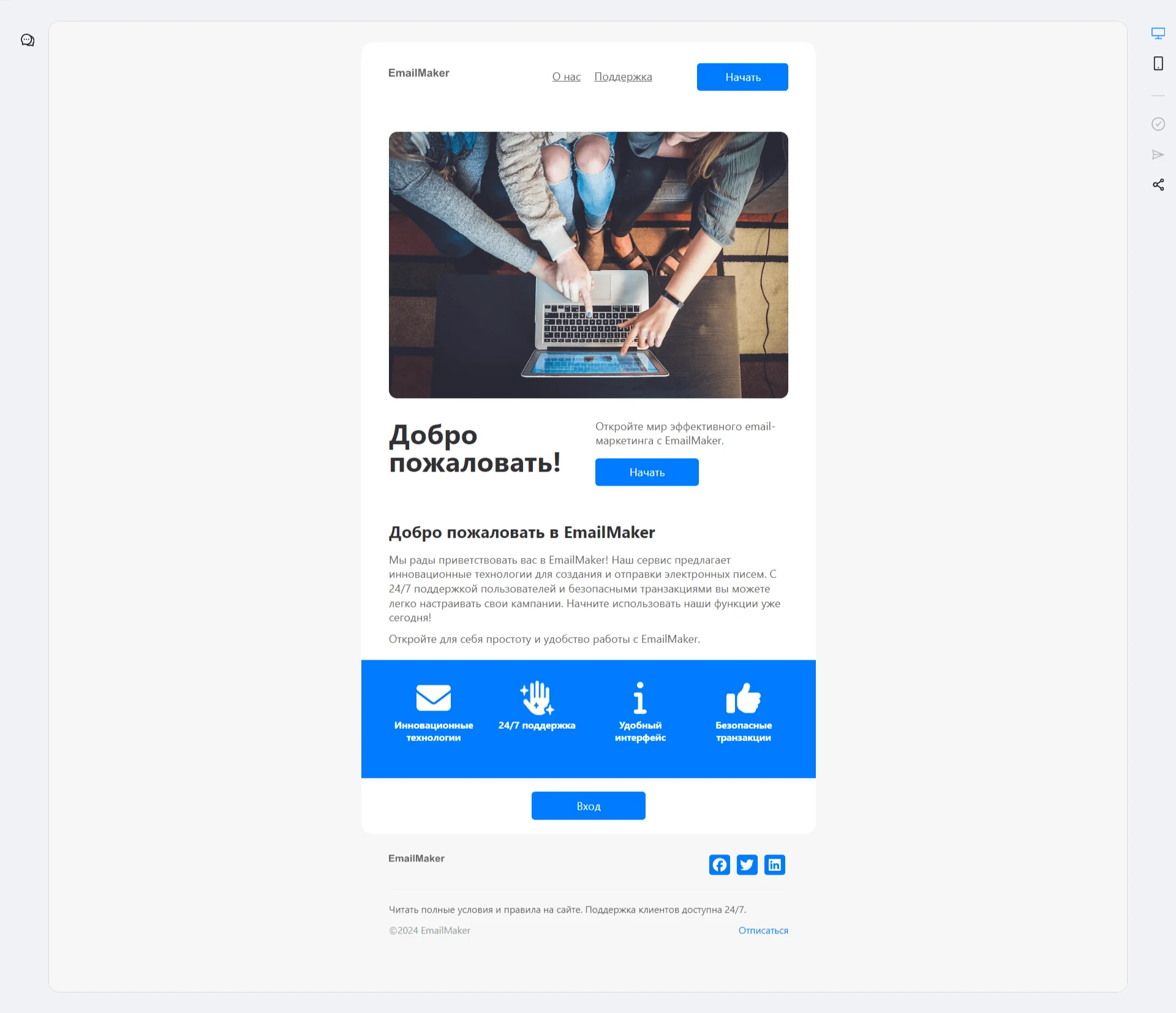 Например, это ИИ-ассистент сгенерировал по описанию «Это welcome-письмо для человека, который только подписался на рассылку сервиса EmailMaker. В нём мы должны поприветствовать нового подписчика и рассказать ему о сервисе»: