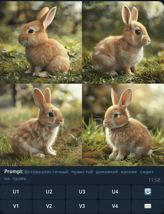 Попросили нейросеть сгенерировать кролика с помощью промпта: фотореалистичный пушистый домашний кролик сидит на траве. Результат — ниже.
