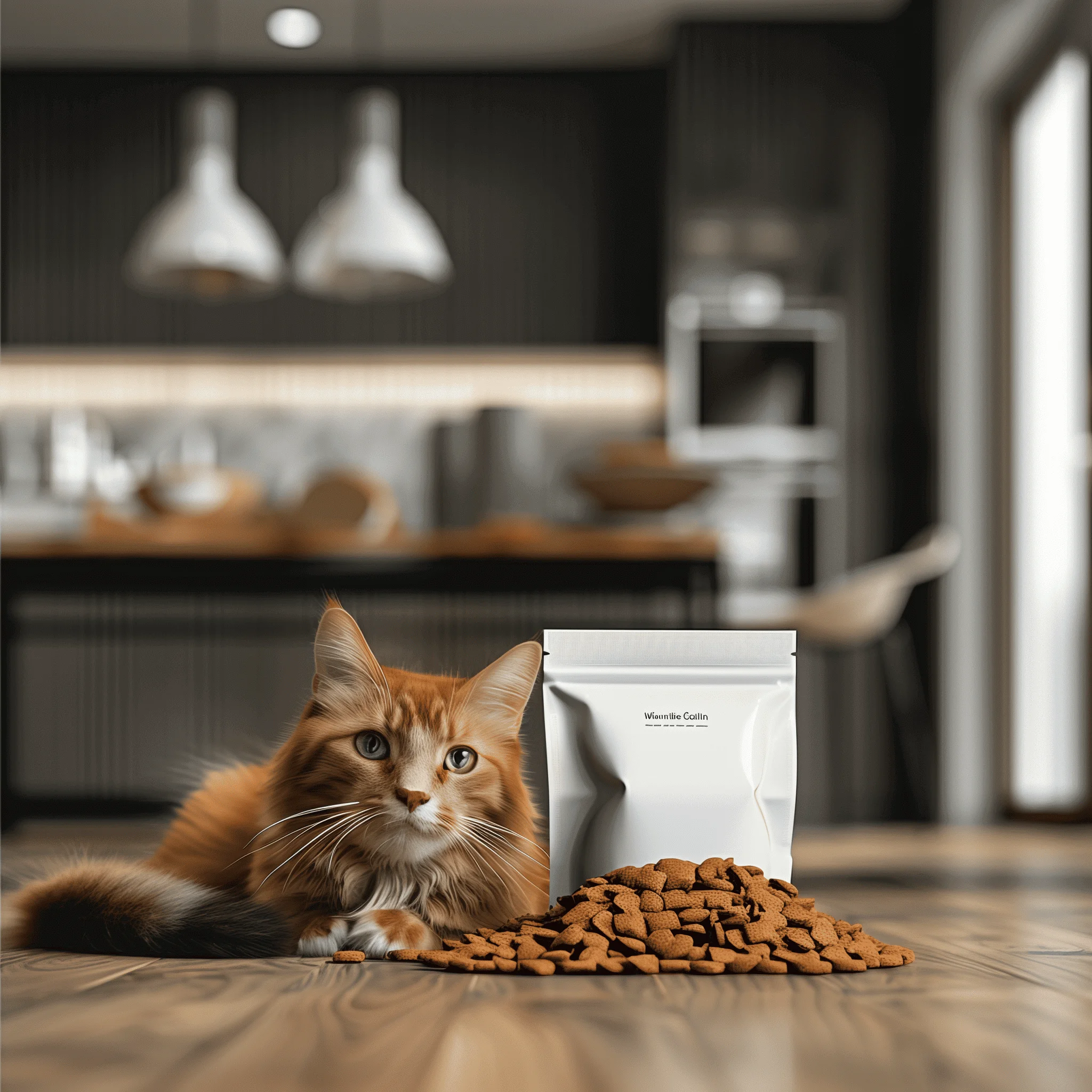 Также нейросети умеют рисовать людей, животных, природу или что-то вымышленное. Например, ниже попросили ИИ сгенерировать мокап корма для кошек по промпту: hyperrealistic photograph of cat food packaging mockup, white package with cat logo, clean aesthetic cinematic image, advertisement, Cinestill 800T --v 6.0.
