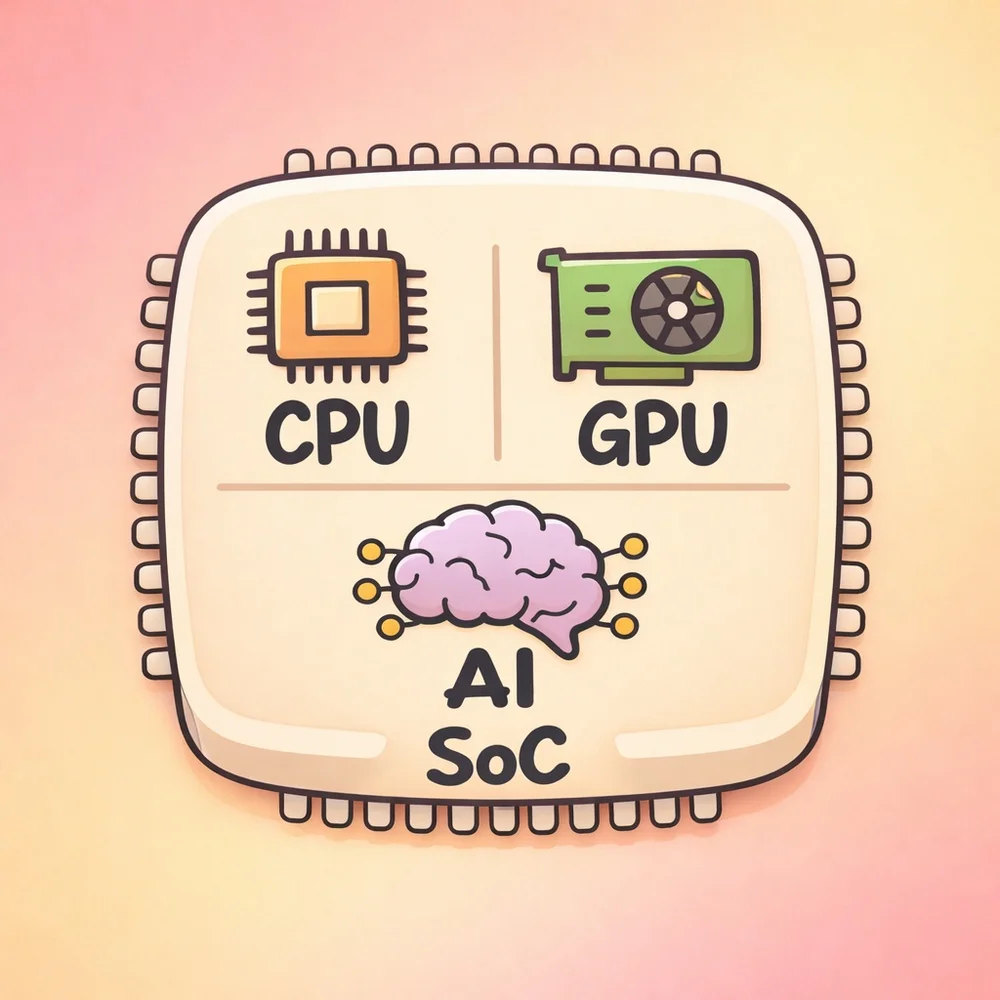 Современные ноутбуки все чаще используют энергоэффективные SoC — это «система на одном чипе», где в одном корпусе объединены процессор, графический процессор и иногда блоки для упрощения просчета с ИИ. Подход, когда CPU и GPU в одном чипе, дает хорошую производительность без перегрева и шума вентиляторов.