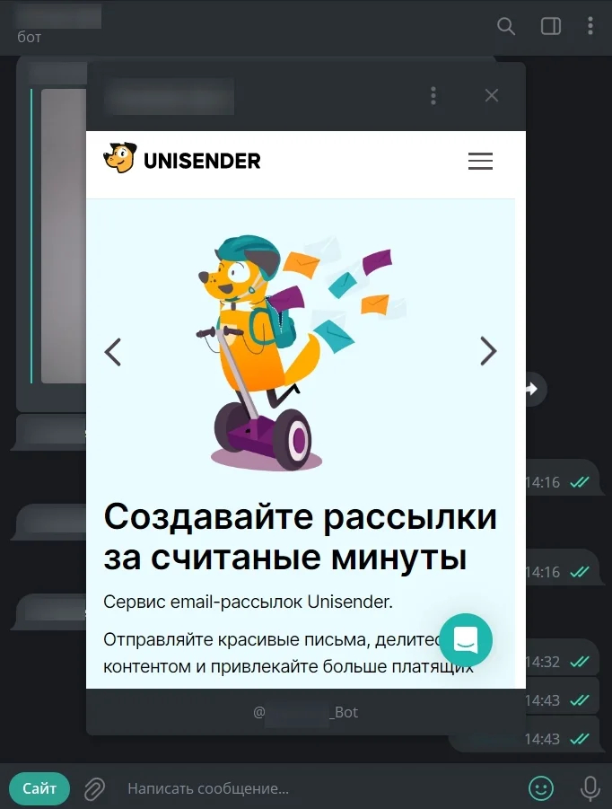 Email / Telegram / SMS. Есть AI-ассистент, 200+ готовых шаблонов и интеграций, сегментация и персонализация. До 1 500 писем бесплатно.
