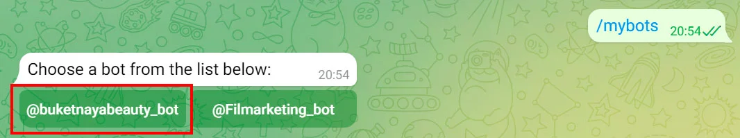 Выберите чат-бота, для которого хотите добавить картинку в описание.