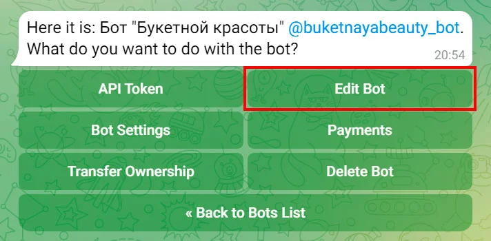 Нажмите «Edit Bot».