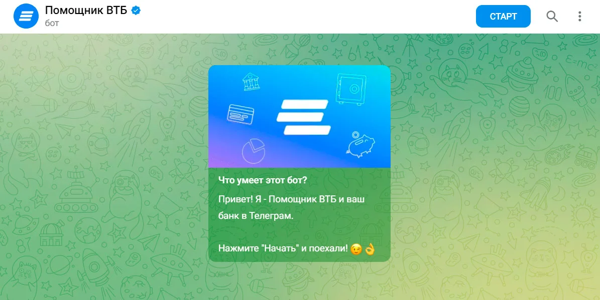 Ещё пример описания чат-бота с картинкой от ВТБ: