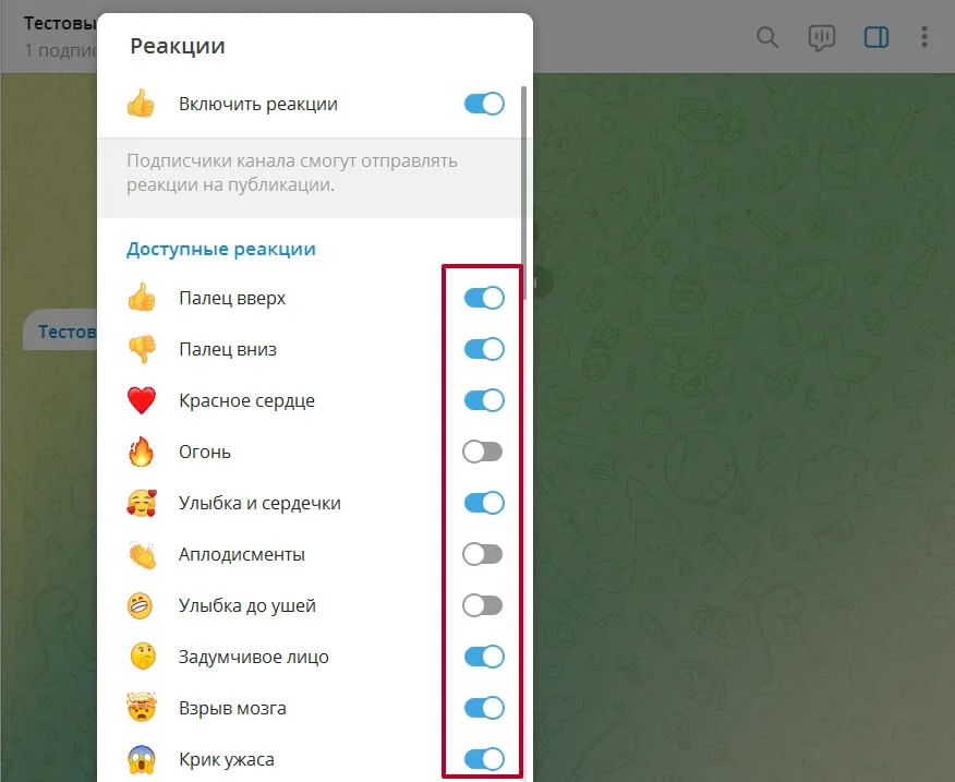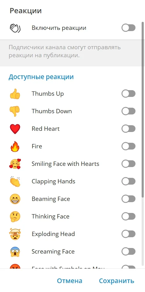 Здесь же можно выборочно отключить реакции, которые вы не хотите видеть под постами. Для этого нужно перевести ползунок в неактивное положение рядом с нужной реакцией.