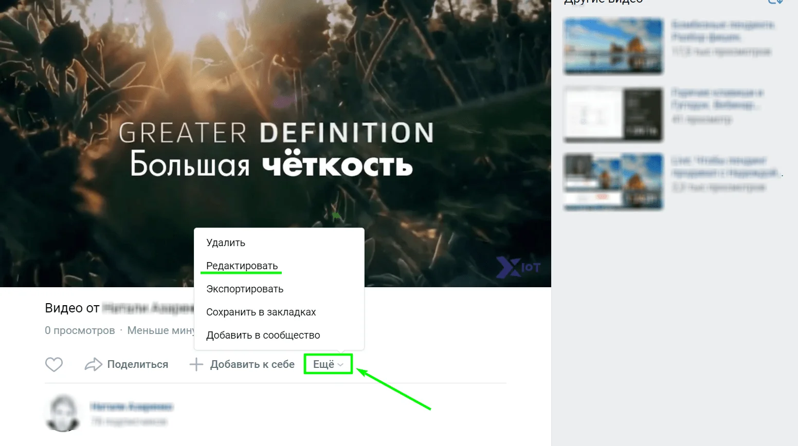 2. Откройте загруженную запись и под видео нажмите на «Редактировать».