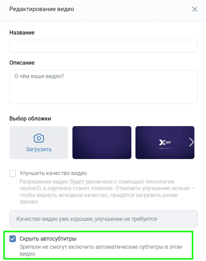 Автоматические субтитры добавляются в видео по умолчанию, если они доступны для указанного в настройках языка (русский, английский, немецкий, турецкий и прочие). Подписи появятся не сразу. Длительность обработки зависит от длины и сложности звуковой дорожки.