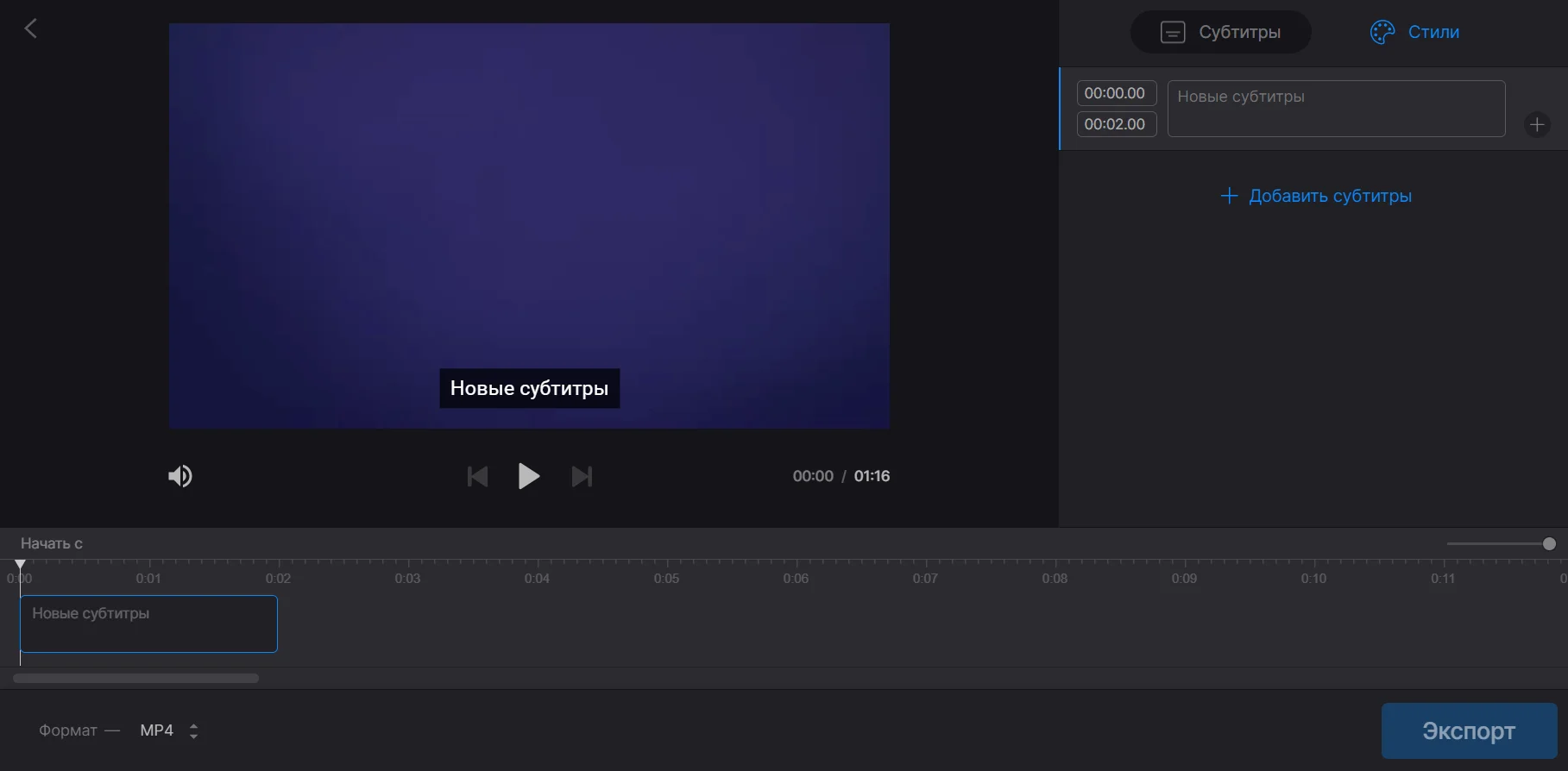 Принцип использования большинства сервисов для добавления субтитров похож. Необходимо загрузить видео, в редакторе добавить подписи и скачать обработанный файл.