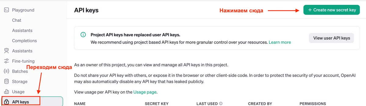 Для интеграции ChatGPT в Google Docs и Таблицы понадобится API-ключ. Создать его можно на сайте OpenAI через свой зарегистрированный аккаунт.