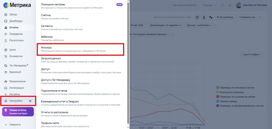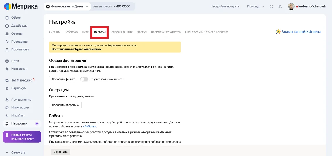Если вы случайно включите фильтрацию трафика, а позже захотите снова видеть все визиты, просто удалите фильтр. После этого новые данные снова будут собираться без ограничений — включая те визиты, которые раньше фильтр исключал. Старые данные при этом не потеряются.