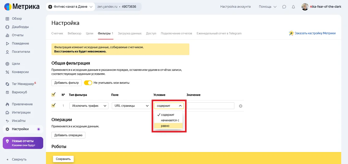 Операции в разделе фильтров Яндекс Метрики помогают сделать аналитику более точной и гибкой. Если фильтры помогают задать базовое условие, например, исключить визиты с конкретного IP-адреса, то операции позволяют уточнить правило. С их помощью можно не грубо отрезать часть трафика, а настраивать аналитику так, чтобы видеть реально важные источники трафика.