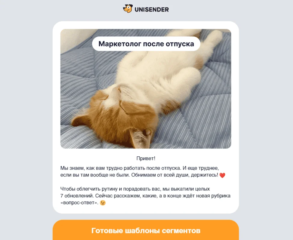 Главным элементом всегда должен быть текст рассылки. С помощью картинок можно добавить юмора или эмоциональной окраски, но мемы не должны заменять основное общение. Здесь можно использовать небольшой лайфхак. Попробуйте прочесть подготовленное письмо без мемов и оценить, насколько понятно его содержание.