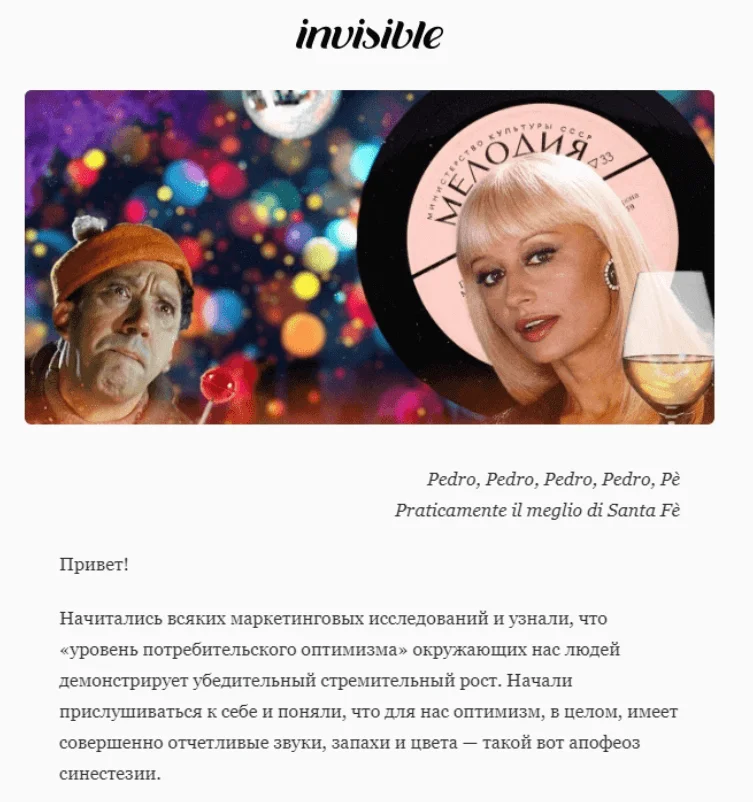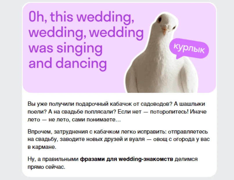 Отличие от конкурентов. Использование мемов и сленга помогает бренду выделиться в условиях переполненных почтовых ящиков. Неформальный подход добавляет уникальности рассылке и делает её привлекательнее стандартных рекламных писем с формальными текстами.