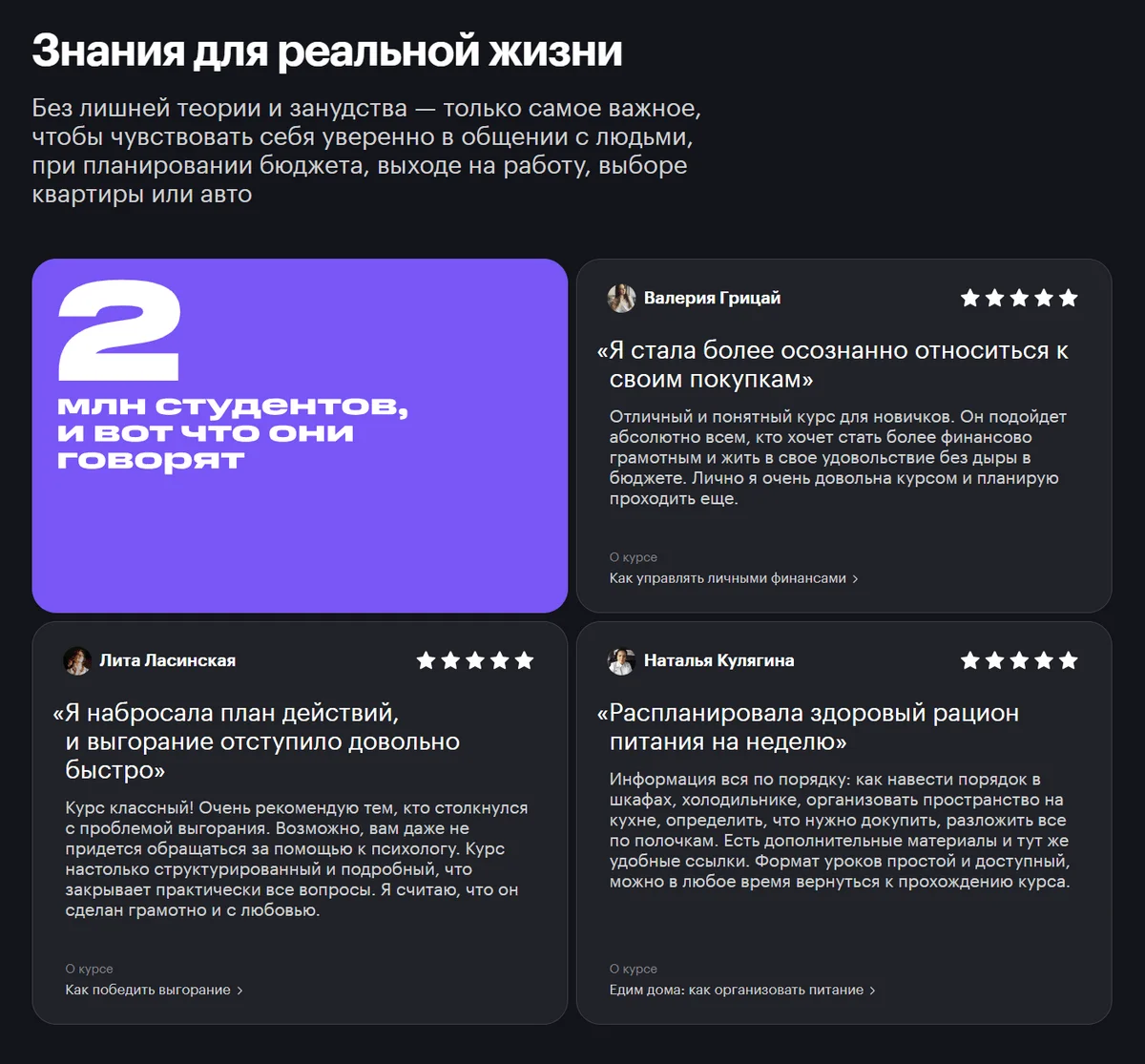 Самые «вечнозеленые» темы — здоровье, финансы, отношения, саморазвитие и личный опыт. Они долго остаются актуальными, но их сложно сделать по-настоящему полезными. Чаще всего люди и так знают, что нужно откладывать деньги каждый месяц, заниматься спортом три раза в неделю, и читать по полчаса в день. Но никто этого не делает.