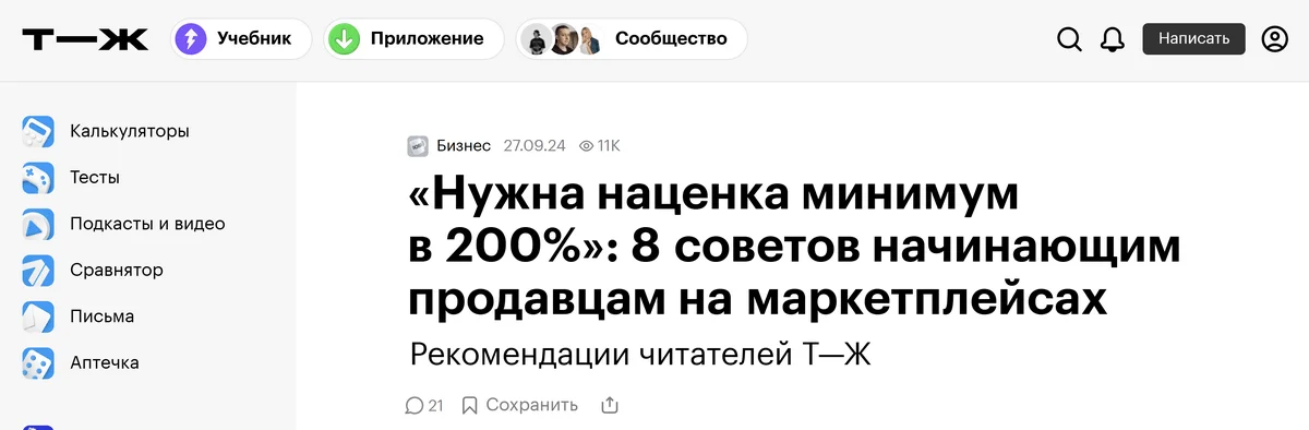Иногда не вечнозеленые темы можно сделать вечнозелеными. Например, тема маркетплейсов не вечнозеленая — площадки постоянно меняют правила, поэтому инструкции по выходу на маркетплейсы меняются каждые полгода. Но Т—Ж изменили саму тему: вместо инструкции предложили вечнозеленые советы экспертов. Эта статья занимает третье место в поисковой выдаче уже год и все еще не устарела.