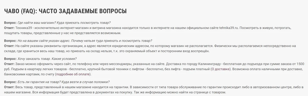 Часто задаваемые вопросы (FAQ). Актуальны для коммерческих страниц сайтов, а также могут использоваться отдельным блоком внутри лонгридов, инструкций и другого контента.