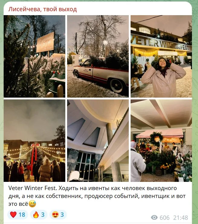 Я создала свой канал, так как хотела больше писать. В рабочих задачах как ивентщик организую и посещаю разные мероприятия, много общаюсь с людьми. И для меня посты — это способ рефлексировать, перерабатывать этот объем информации.