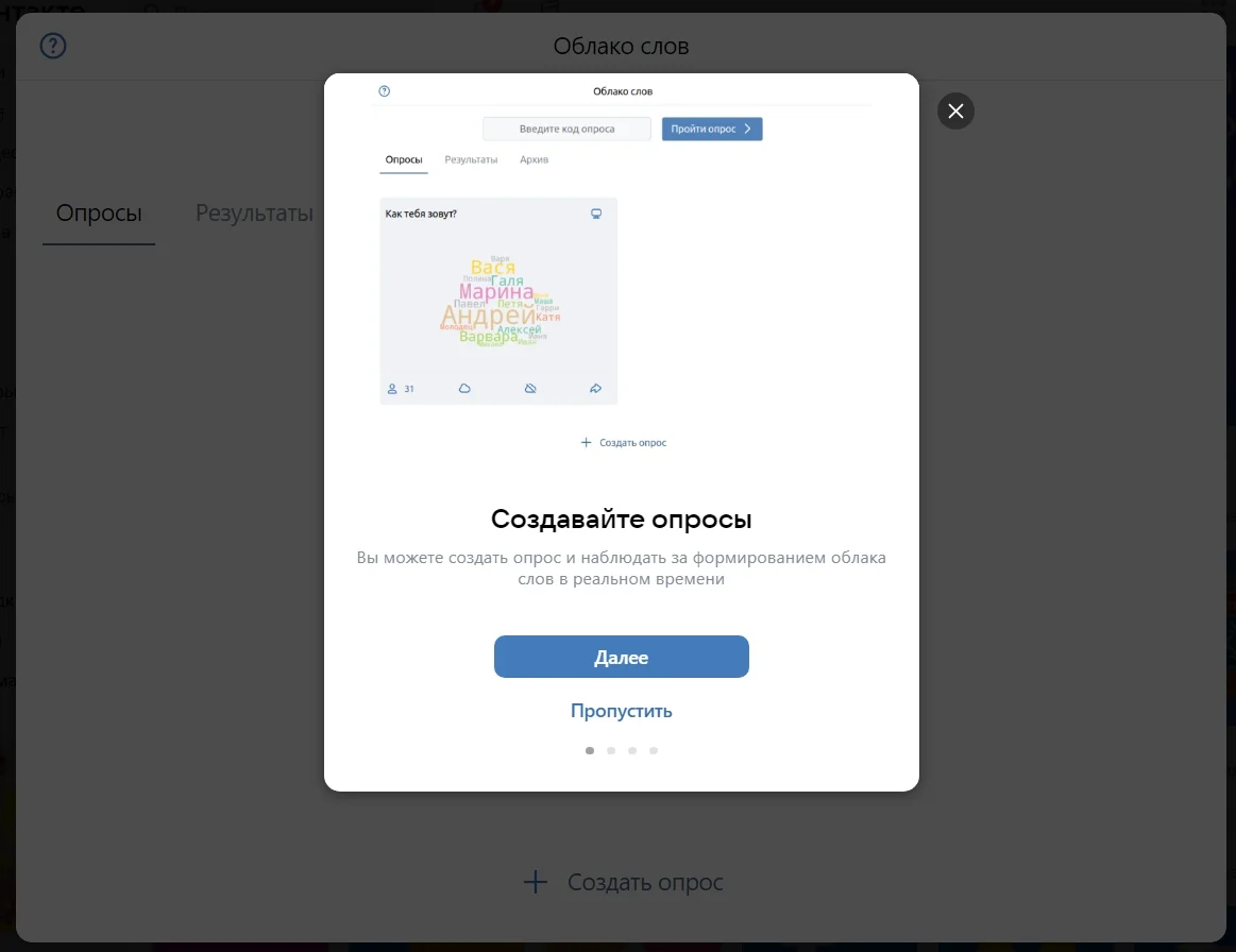 Компании могут разрабатывать и внутренние приложения. Например, сервисы для создания облака слов или сбора аудитории VK Ads.