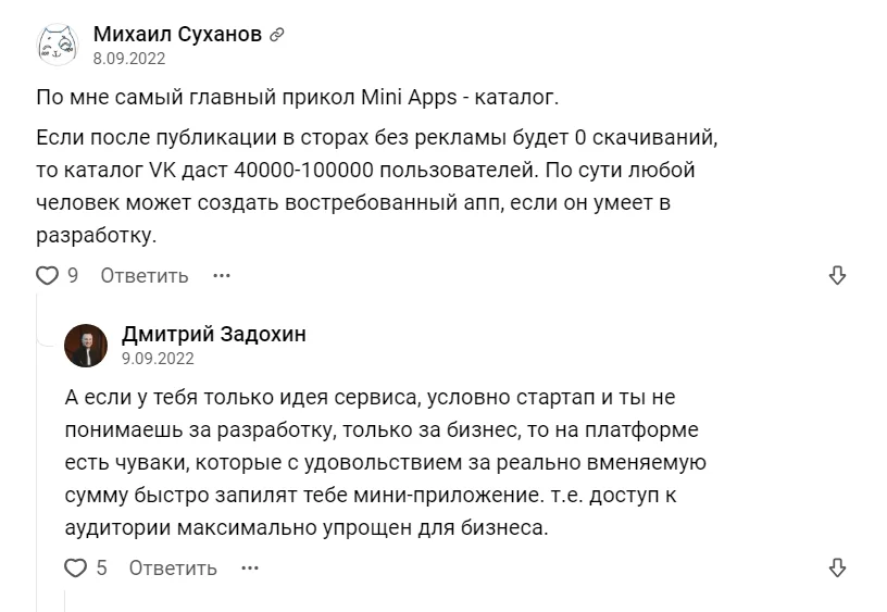 Мини-приложения — огромная площадка для продвижения. Дело в том, что ВКонтакте ежедневно посещают миллионы человек. И шанс того, что ваше приложение заметят, намного выше, чем если вы просто загрузите его в маркет. Об этом говорят обычные пользователи на VC.