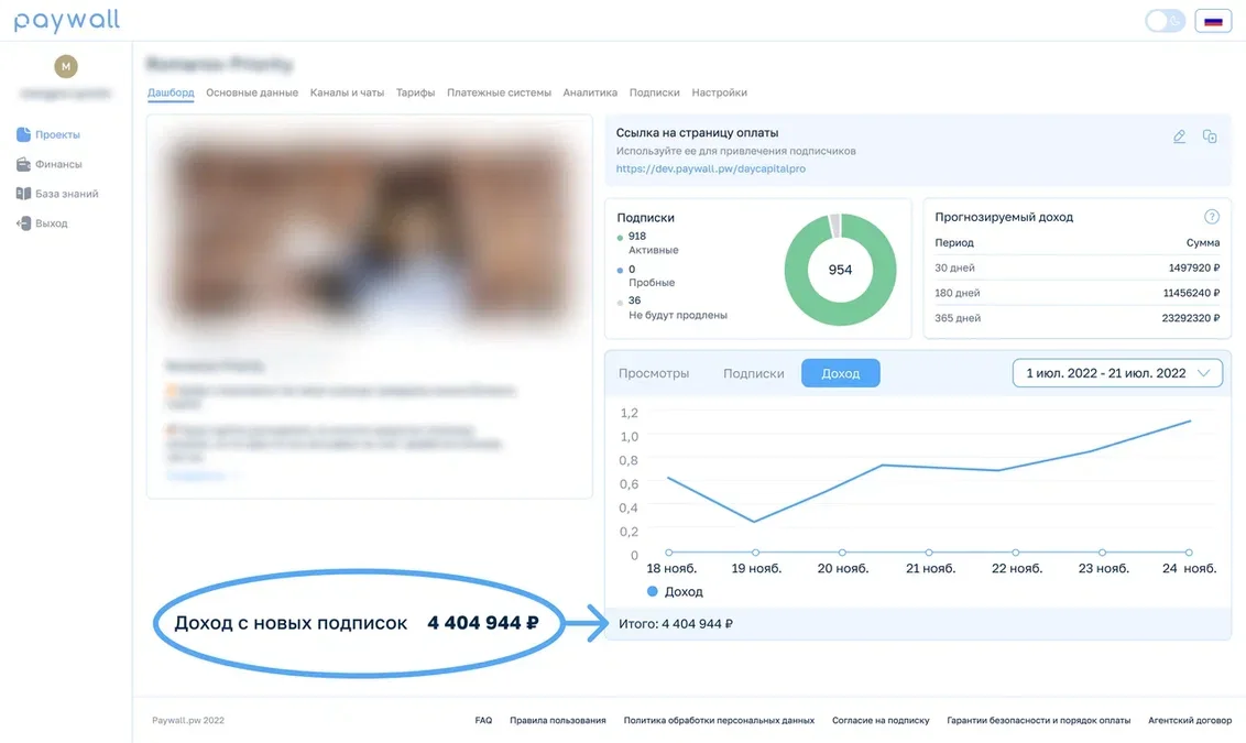 Всё, что требовалось, — подключить Paywall к моему закрытому каналу, настроить тарифы подписки и везде разместить ссылку на проект.