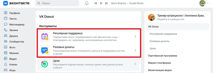 Помимо РСЯ, сообщество можно монетизировать с помощью внутренних инструментов ВКонтакте: