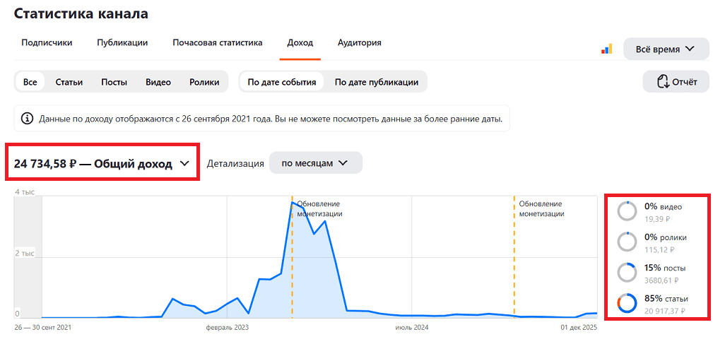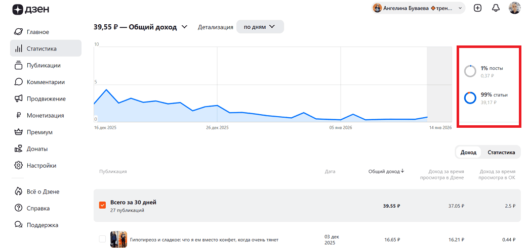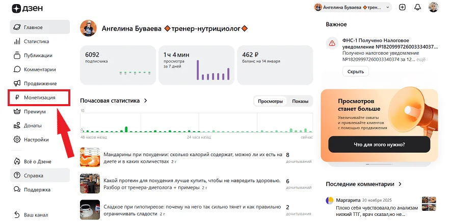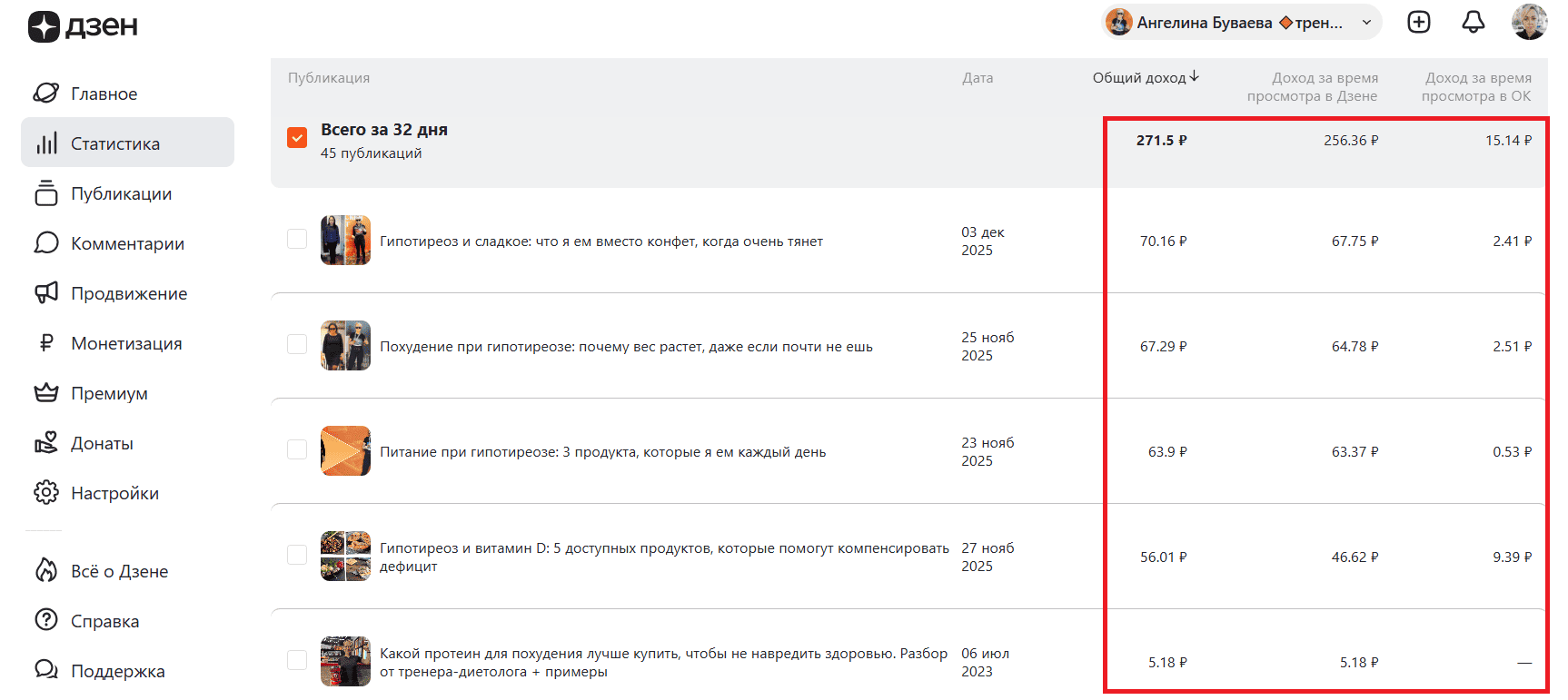 В ноябре 2025 я проводила тесты в своем Дзен-канале, чтобы понять, как сейчас работают разные модели монетизации и рекомендательные алгоритмы. Публиковала преимущественно статьи, потому что раньше они приносили больший доход, приводили лидов и клиентов на фитнес-консалтинг и сопровождение.