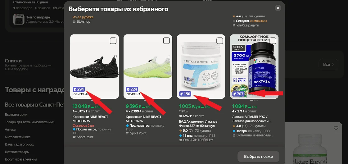 Генерировать рекламные ссылки можно не только в Яндекс Дистрибуции, но и в интерфейсе Яндекс Маркета. Товары, которые вы можете рекламировать, получая вознаграждение, буду отмечены фиолетовым ярлыком.