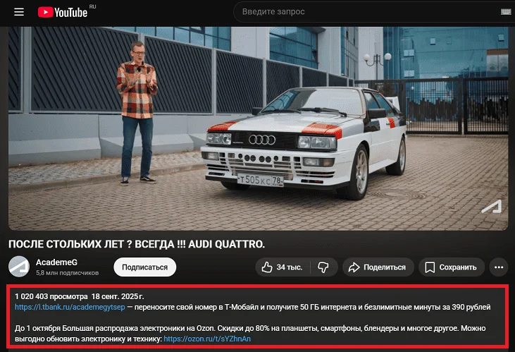 Например, известный автоблогер AcademeG продвигает таким образом онлайн-курсы, бытовую технику от производителей и подборки товаров на маркетплейсах.