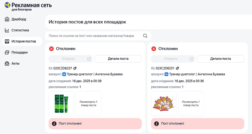 Регулярность публикаций. Алгоритмы платформ отдают приоритет активным авторам: регулярные публикации повышают вероятность конверсии в целевое действие, что делает размещение рекламы выгодным для всех участников цепочки. Например, РСЯ может отклонить заявку владельца Telegram-канала или сообщества ВКонтакте, если он публикует новые посты реже 1 раза в месяц.