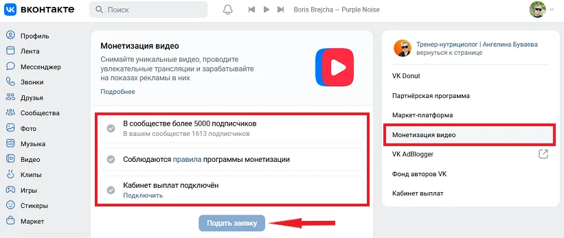 Если паблик соответствует требованиям, вы сможете подать заявку в настройках сообщества — раздел «Монетизация – Партнерская программа».