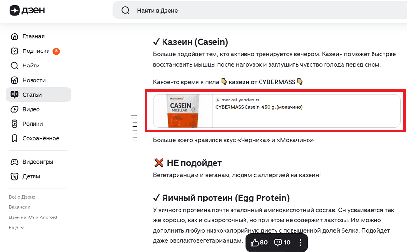 Реклама товаров с Яндекс Маркета. В контент на Дзене можно вставлять реферальные ссылки на товары с Яндекс Маркета и получать вознаграждение с каждой покупки. Используйте этот способ монетизации, если регулярно публикуете на канале обзоры и подборки.