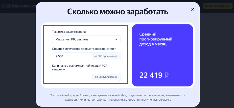 Telegram-канал с аудиторией от 1500 подписчиков можно подключить к Рекламной сети Яндекса. Если площадку одобрят, платформа начнет автоматически размещать на вашем канале рекламу, а вы — получать пассивный доход от показа объявлений.