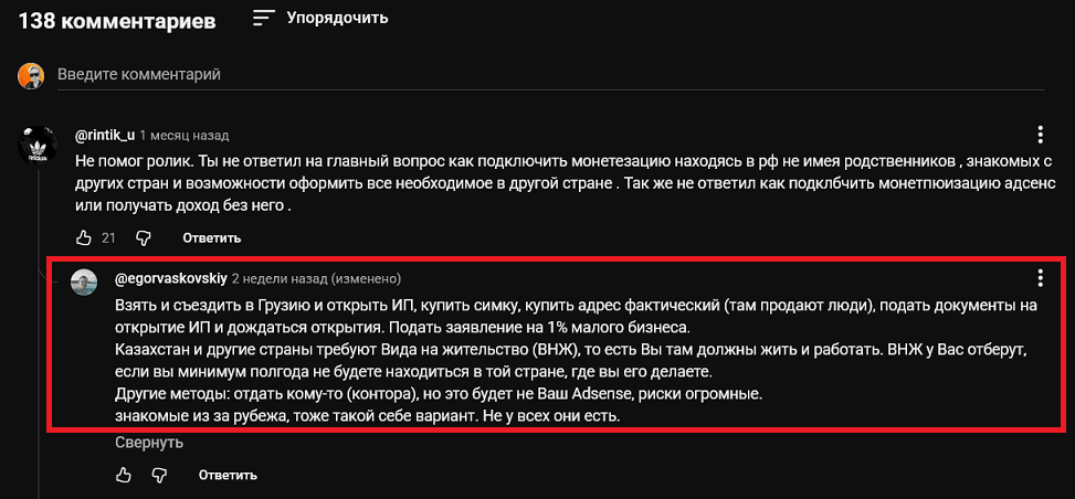 Способ с регистрацией ИП или получением ВНЖ в разрешенных странах (как вариант — регистрация AdSense-аккаунта на родственника за рубежом) может сработать, но у него тоже есть нюансы. Даже если у вас получится сделать все документы, не факт, что доход от монетизации покроет затраты.