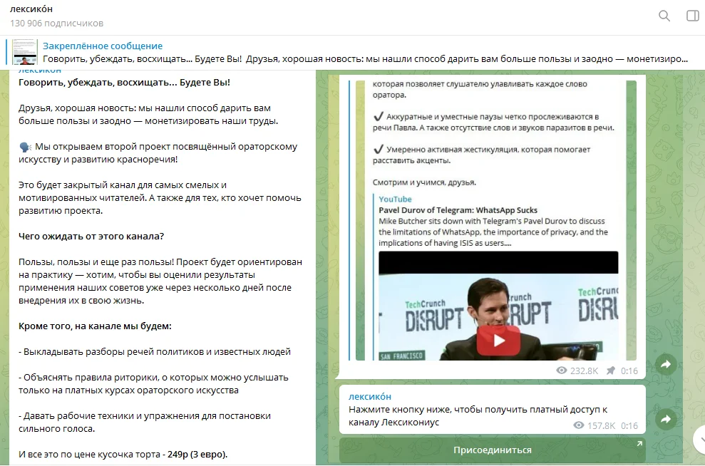 Обычно приватные каналы создают в дополнение к публичным, а затем рекламу платного канала размещают в закрепленном сообщении основного. Чтобы собирать донаты, у канала должно быть более 100 подписчиков.