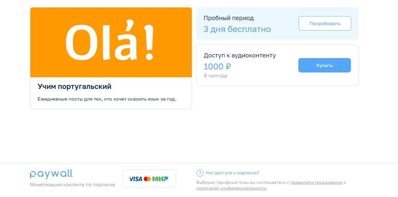 Больше возможностей для настройки платного доступа и удобный личный кабинет со всеми необходимыми инструментами и аналитикой предлагает сервис Paywall. Его главная фишка — возможность создавать несколько тарифов и предлагать пробный период подписки.