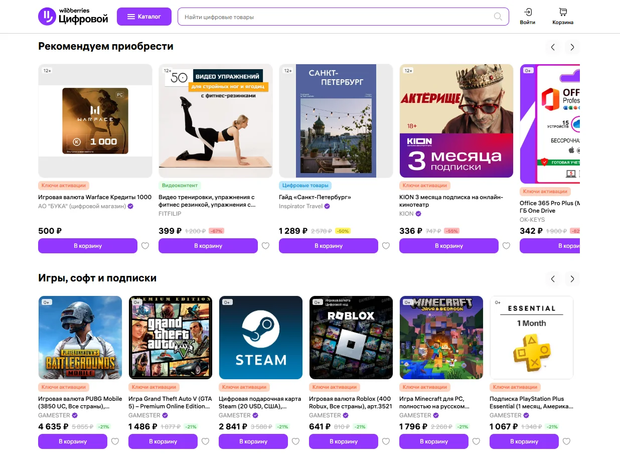 Если у вас есть юрлицо, продавать контент можно в специальном разделе популярного российского маркетплейса — Wildberries Цифровой.
