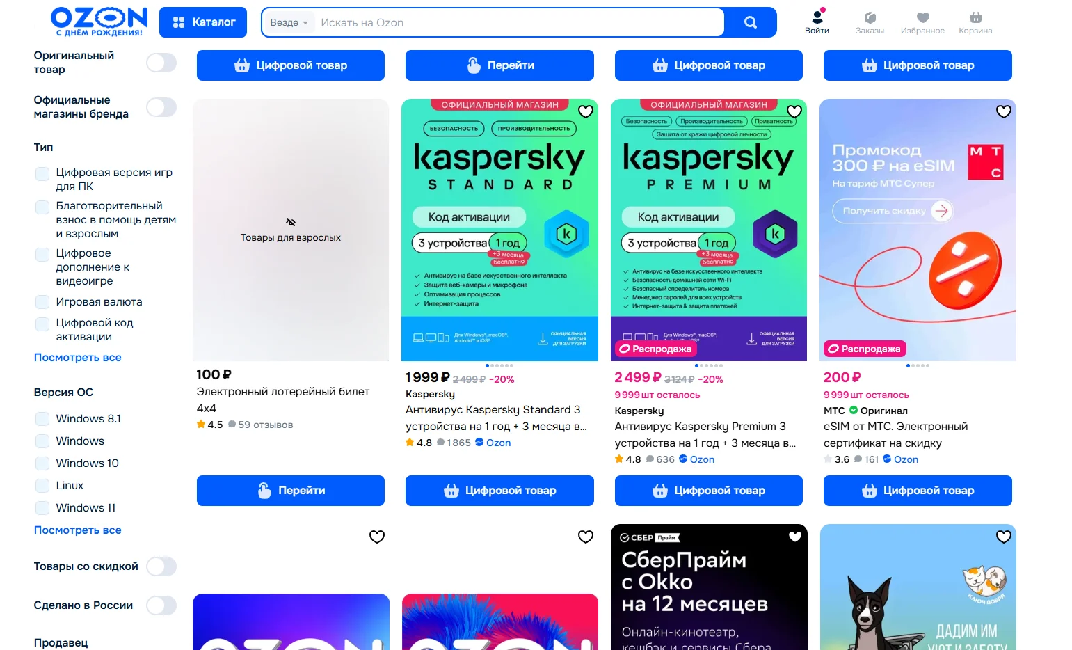 На Ozon тоже можно продавать цифровые товары. Только для этого нет отдельной площадки, как у Wildberries, продавать книги можно на сайте маркетплейса в разделе «Цифровые товары».