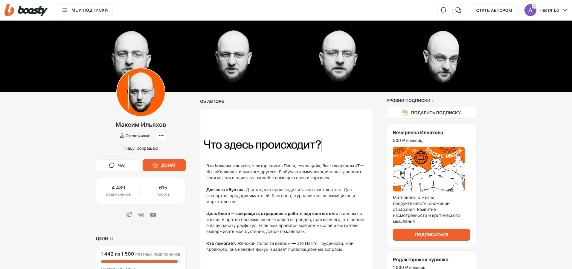 Boosty — платформа, на которой можно размещать эксклюзивный контент, доступный только подписчикам. Уровни подписки вы придумываете сами. Например, можно открыть основную часть контента для базовой подписки (самого дешевого уровня), а какой-то сделать доступным только премиум-подписчикам.