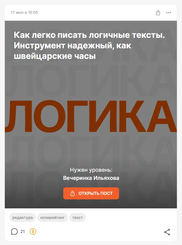 Закрытый контент после публикации выглядит вот так: